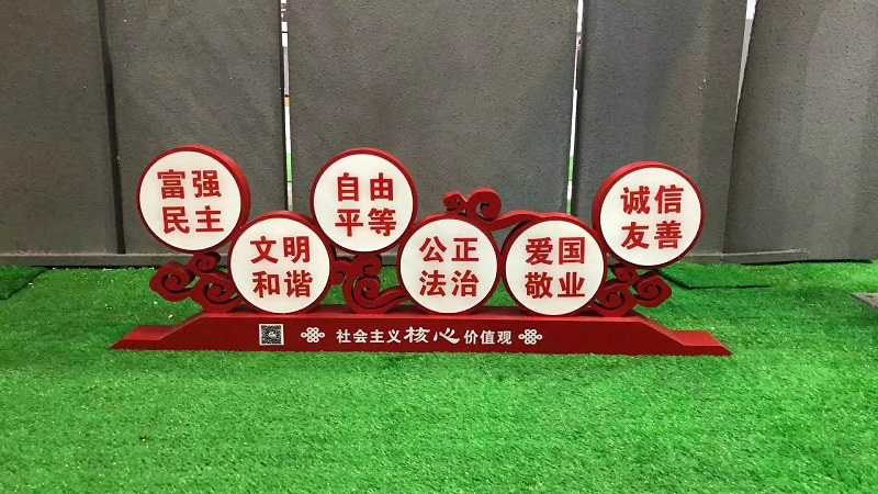 社會主義核心價值觀標識標牌用于弘揚社會主義核心價值觀,引領社會風尚,營造蓬勃進取、和諧向上的社會氛圍,此款標識標牌設計雅致美觀,磅礴大氣,將我國傳統文化的精髓和當代的潮流元素完美融合,打造出兼具古典傳統氣息和現代時尚風格的精美藝術品。