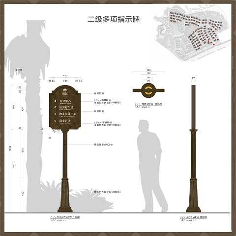 住宅小區(qū)標識牌介紹:住宅小區(qū)標識牌系統(tǒng)主要服務(wù)的對像是業(yè)主以及來訪人員等。整套的住宅小區(qū)標識系統(tǒng)需要完善的標識規(guī)劃、布點、整體的導(dǎo)視方案,還需要統(tǒng)一字號、色體、材質(zhì)工藝,以及體現(xiàn)人文關(guān)懷等細節(jié)處理。比如在處理字體大小的時候,就要照顧人在靜止和動態(tài)的時候,對文字的觀察就有不同,靜止的時候,可以小一點,而在行走的時候,字體就要大一點。在對圖形的時候,需要很高的辨識度,不能讓人產(chǎn)生歧義或誤解。在材質(zhì)選擇方面,就要考慮到經(jīng)久耐用,如果是劣質(zhì)材料,就會引起不必要的麻煩。