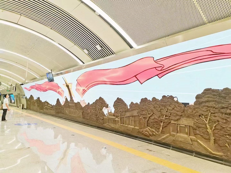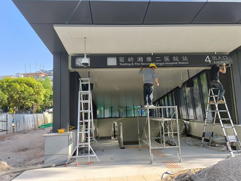 2021年4月,愛奧尼依托十多年導向標識項目的沉淀,以過硬的制造技術,豐富的安裝經驗一舉中標長沙 市軌道交通6號線的導向標識制作與安裝。2022年3月又成功中標長沙地鐵6號線烈士公園南站文化藝術墻 制作與安裝。公司領導高度重視長沙地鐵6號線項目,各部門同事密切配合,克服一切困難,日夜奮站至 保質保量完成交付,并多次在軌道交通調研檢查中獲得高度評價。